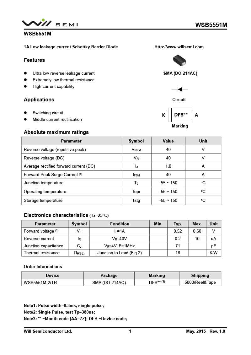 WSB5551M 韋爾肖特基二極管
