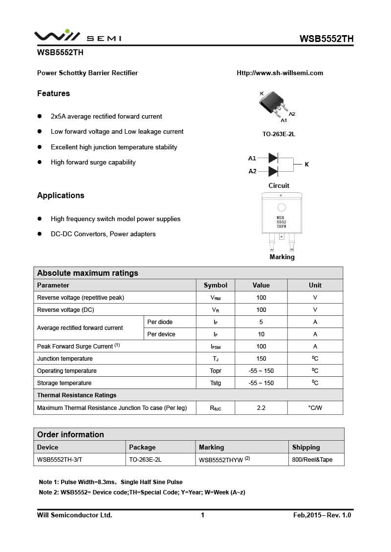 WSB5552TH 韋爾肖特基二極管