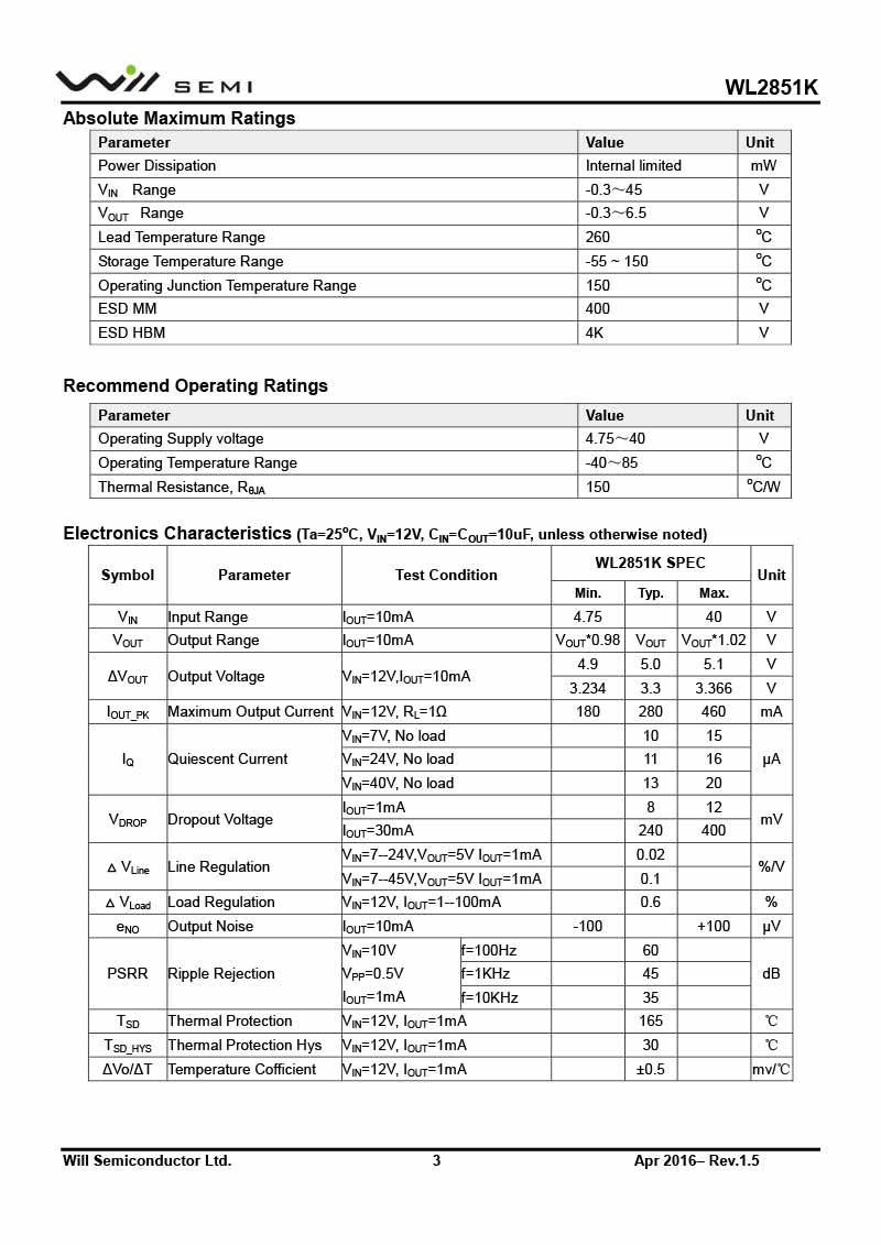 WL2851K 韋爾電源管理LDO