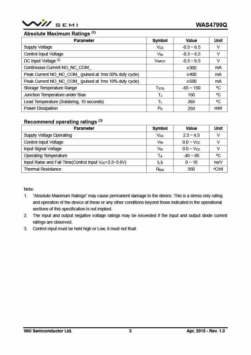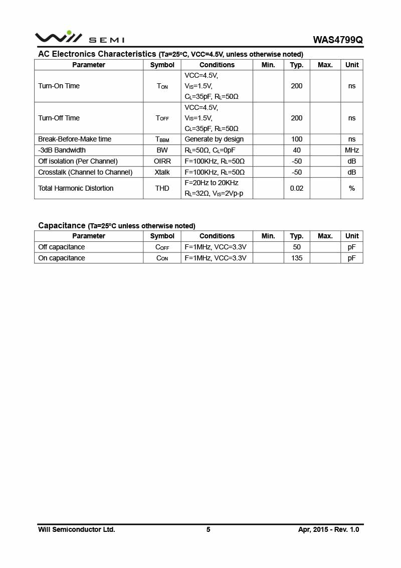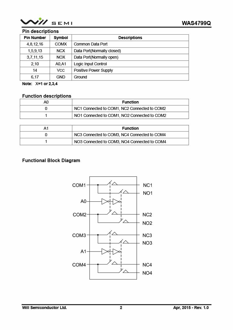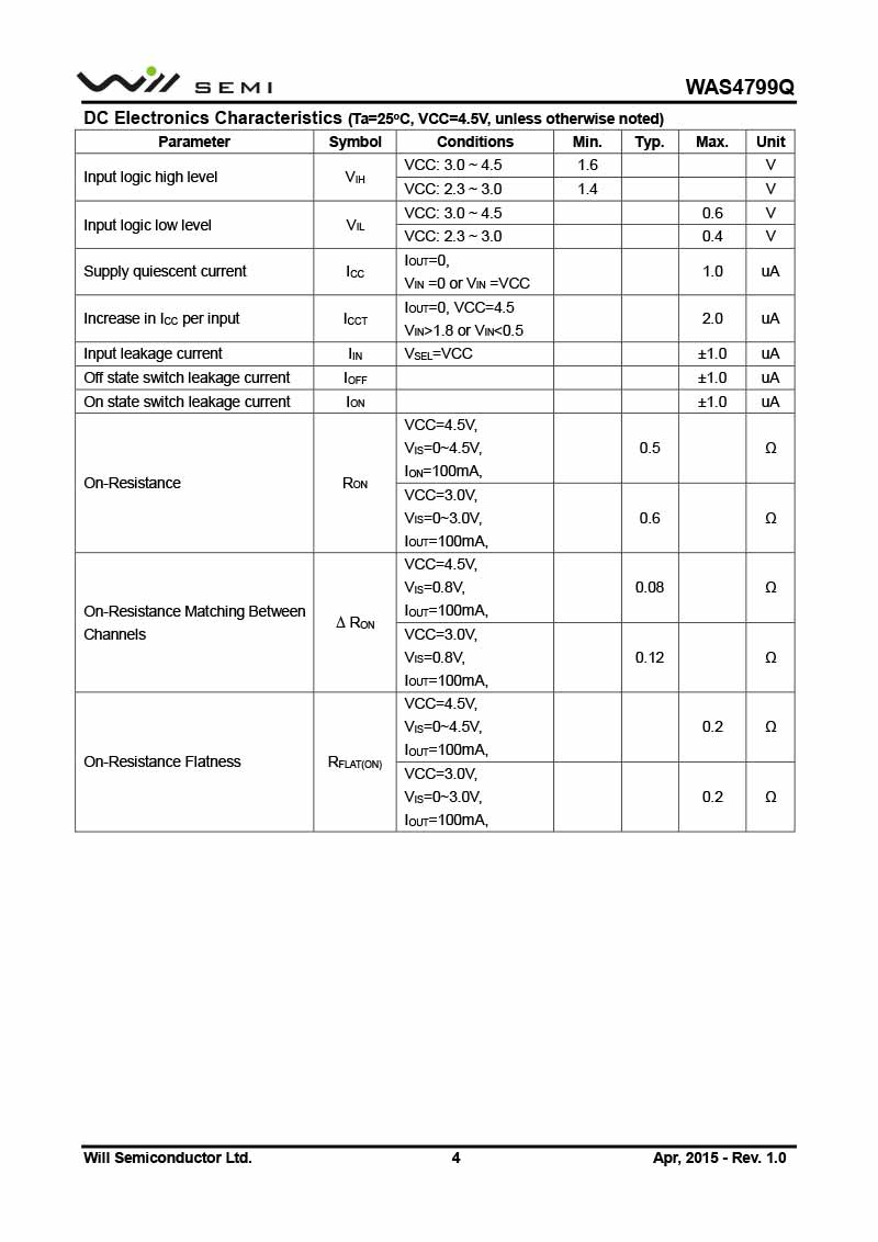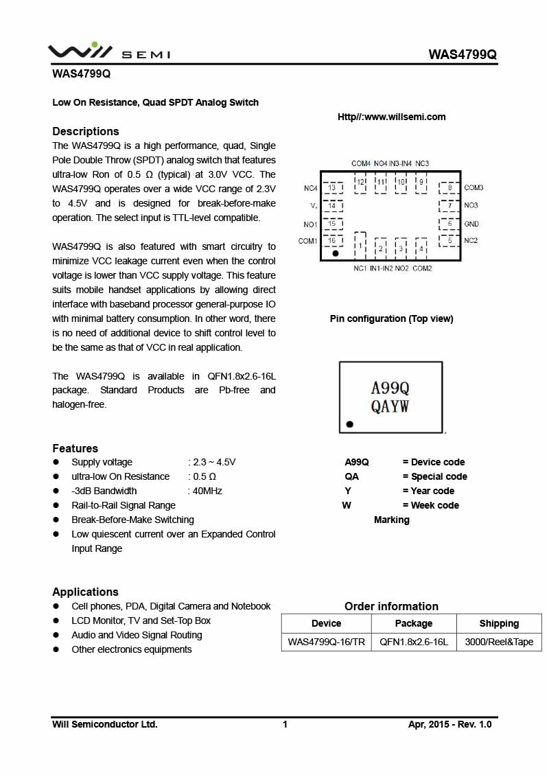 WAS4799Q 韋爾模擬音頻開關(guān)產(chǎn)品