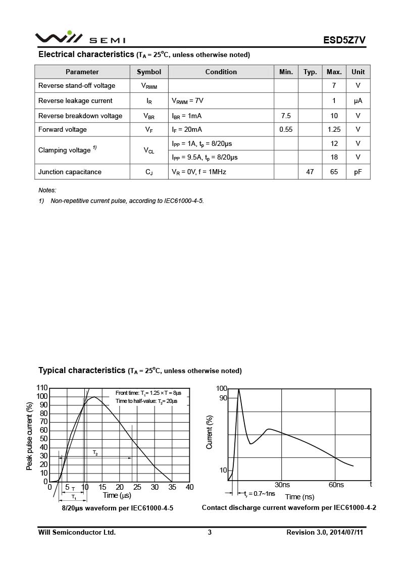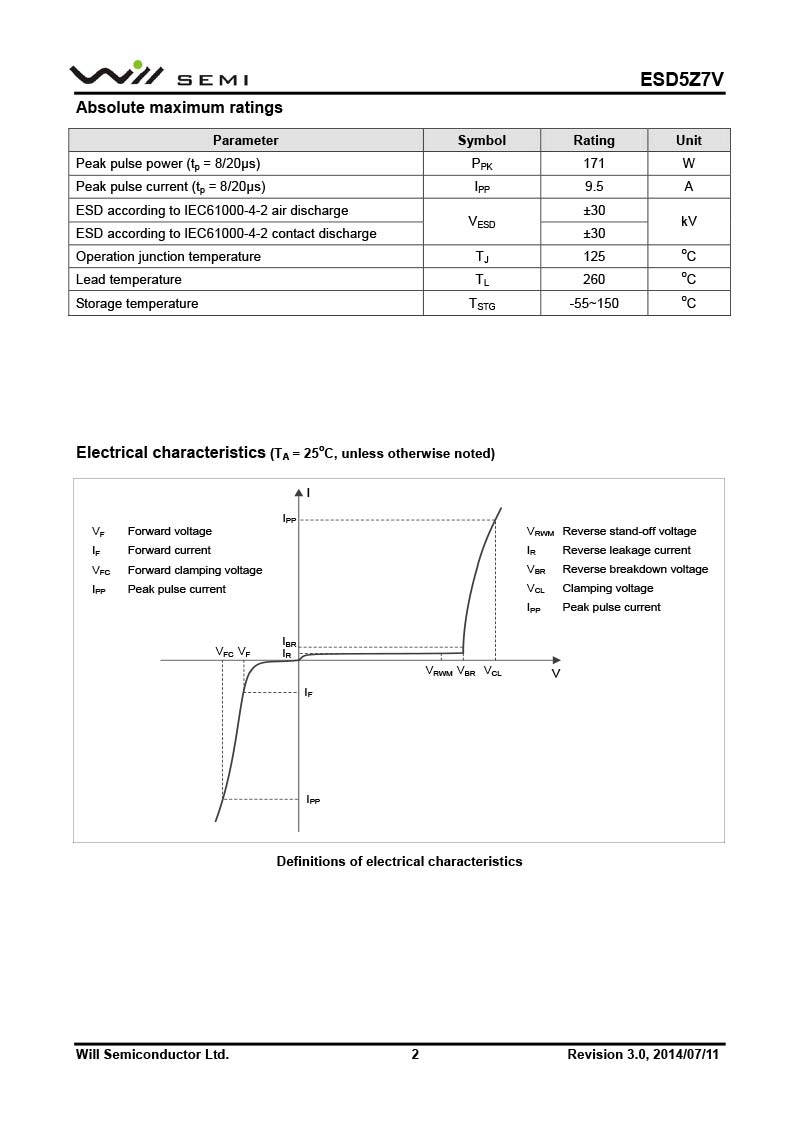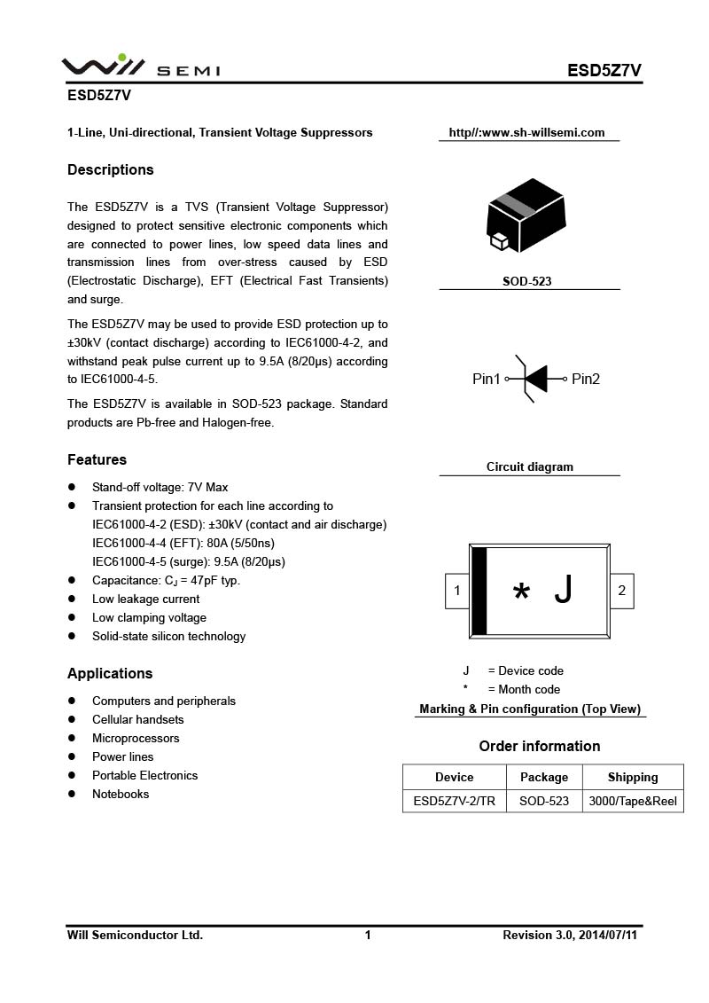 首頁 - 產(chǎn)品中心 - 代理產(chǎn)品 - 韋爾 / WILL -ESD5Z7V 韋爾小功率靜電TVS