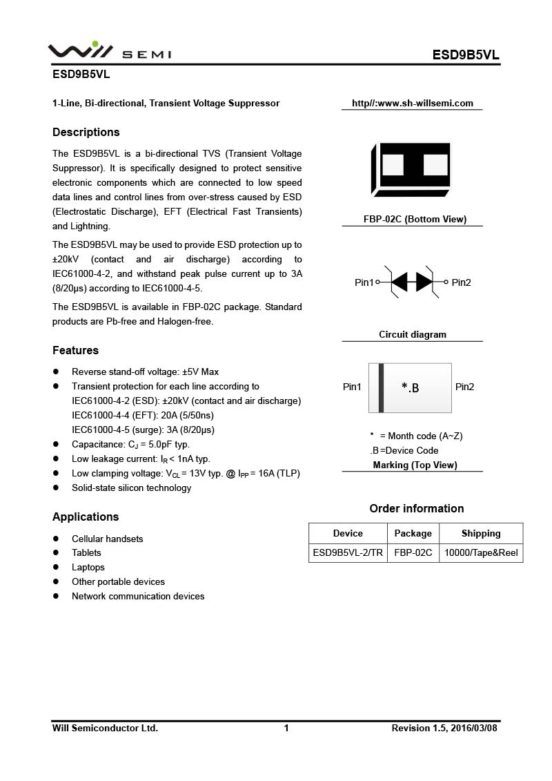 首頁 - 產(chǎn)品中心 - 代理產(chǎn)品 - 韋爾 / WILL -ESD9B5VL 韋爾小功率靜電TVS