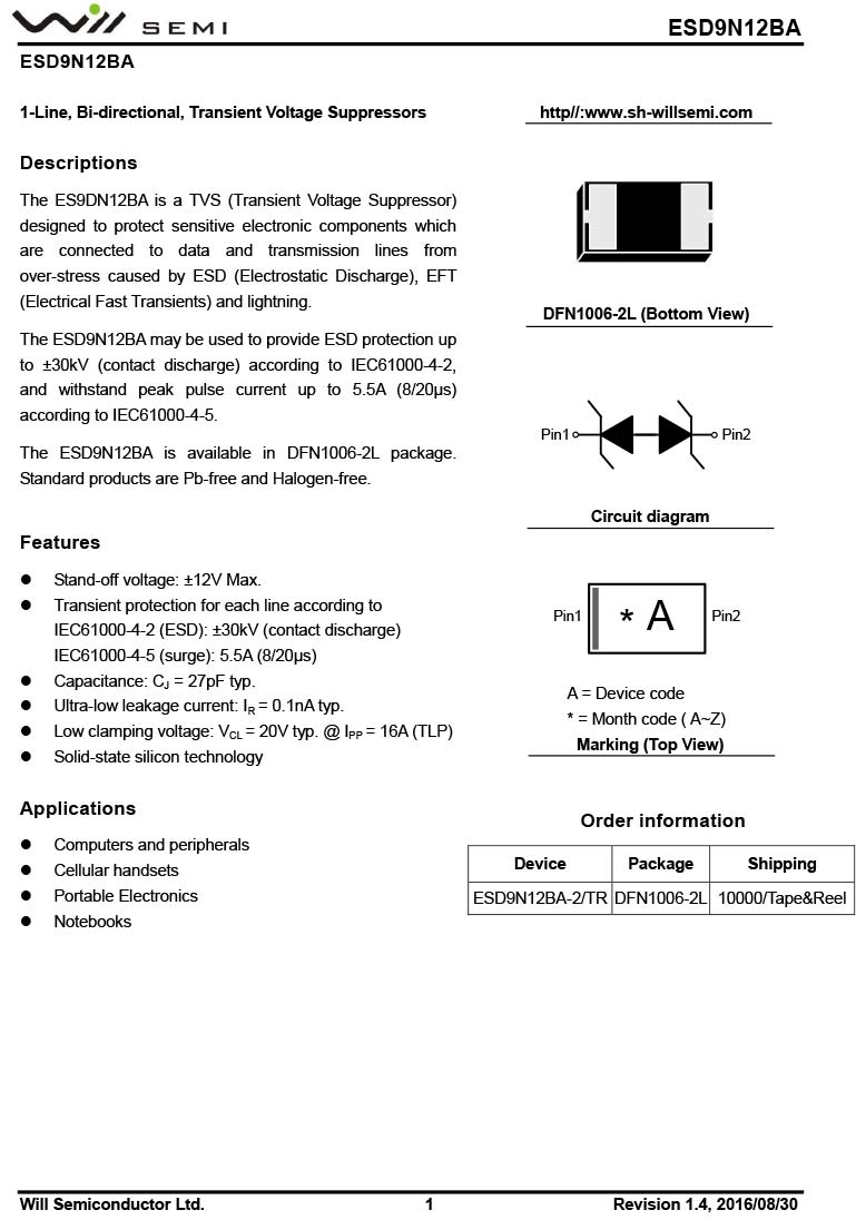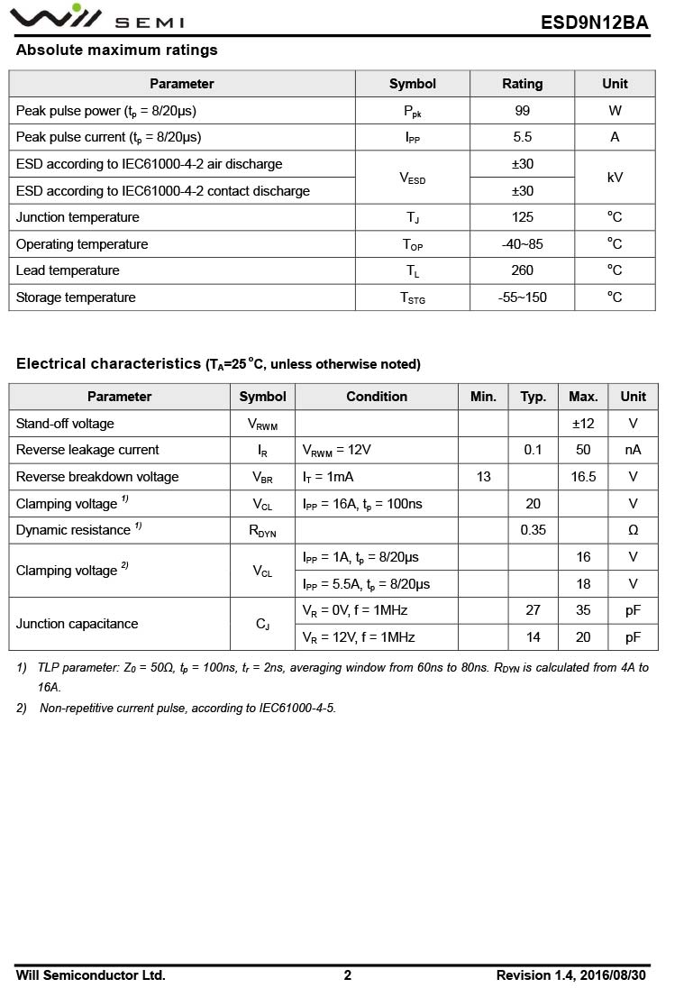 首頁(yè) - 產(chǎn)品中心 - 代理產(chǎn)品 - 韋爾 / WILL -ESD9N12BA 韋爾小功率靜電TVS
