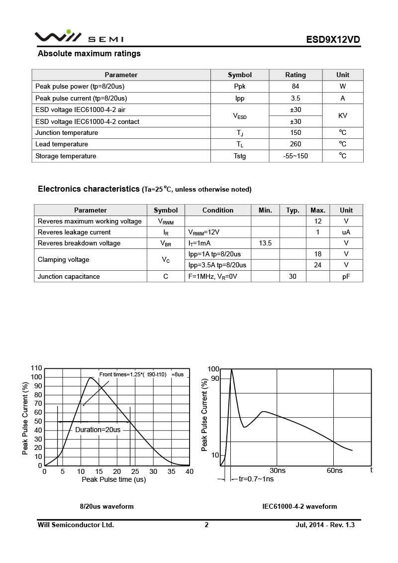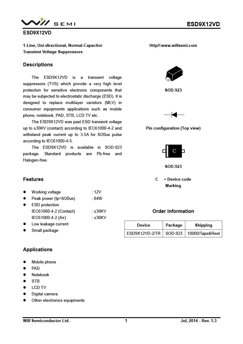 首頁(yè) - 產(chǎn)品中心 - 代理產(chǎn)品 - 韋爾 / WILL -ESD9X12VD 韋爾小功率靜電TVS