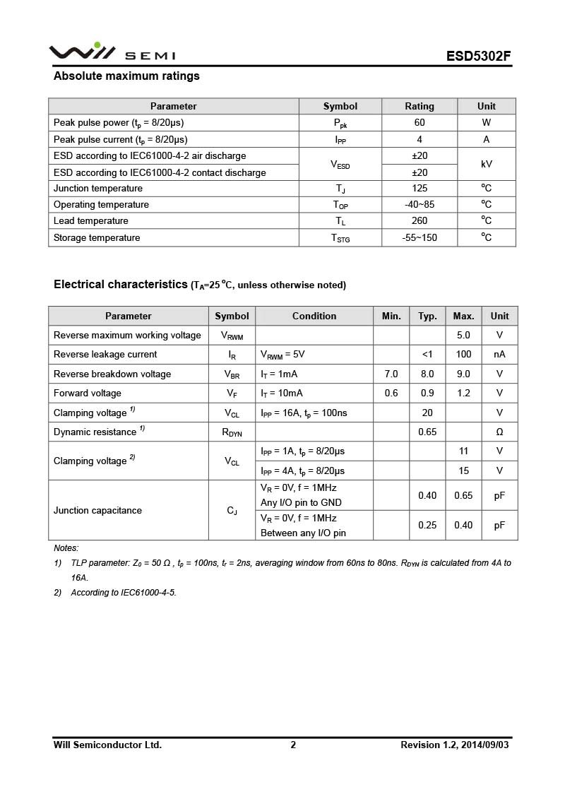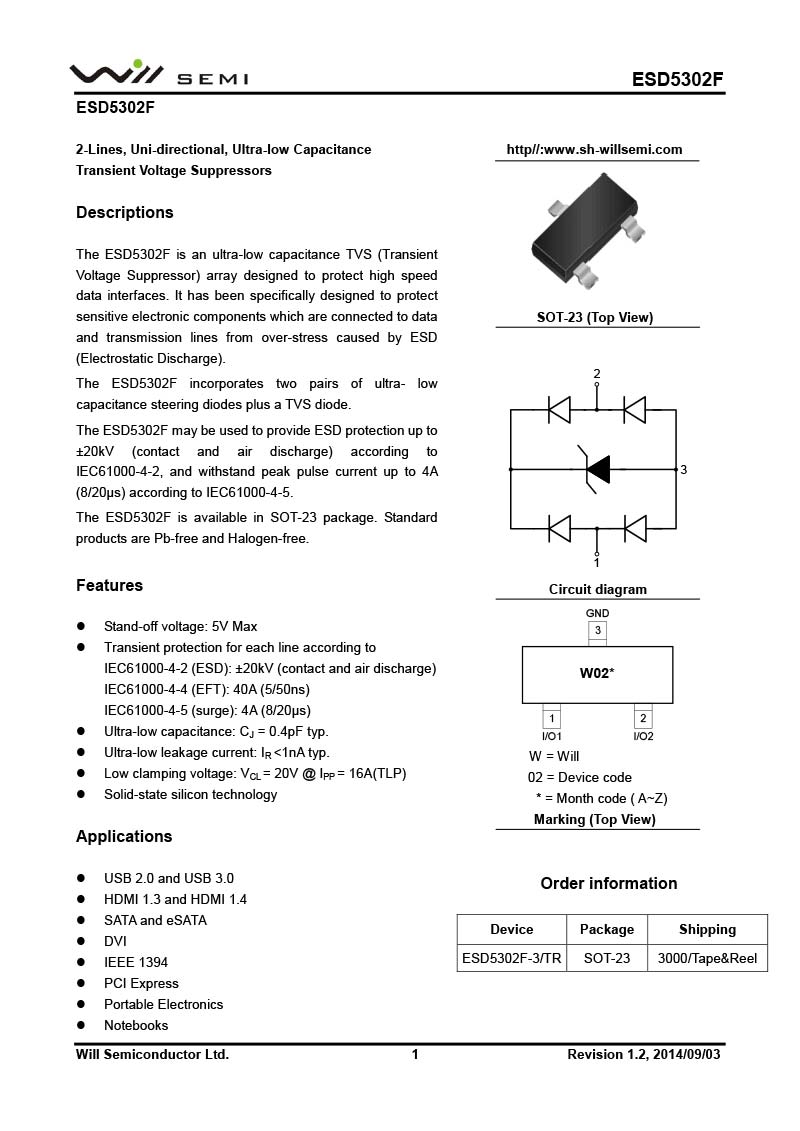 首頁 - 產(chǎn)品中心 - 代理產(chǎn)品 - 韋爾 / WILL -ESD5302F 韋爾小功率靜電TVS
