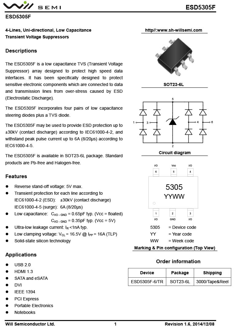ESD5305F 韋爾小功率靜電TVS