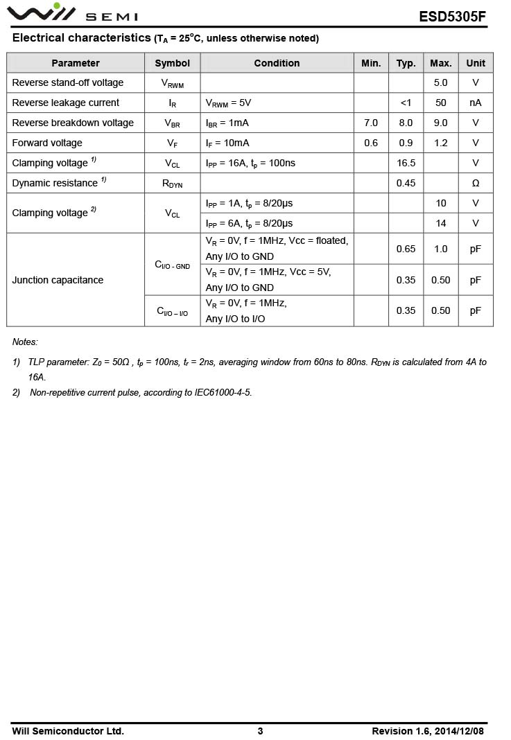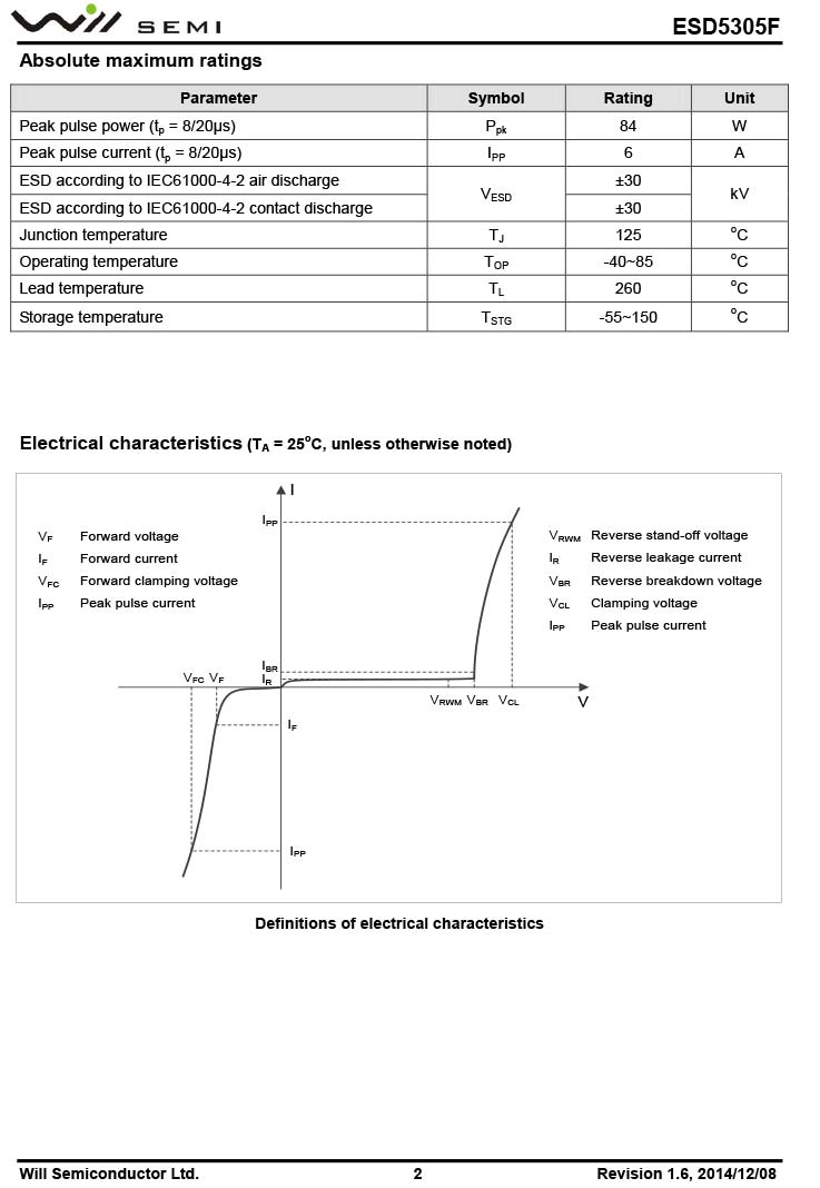 首頁 - 產(chǎn)品中心 - 代理產(chǎn)品 - 韋爾 / WILL -ESD5305F 韋爾小功率靜電TVS