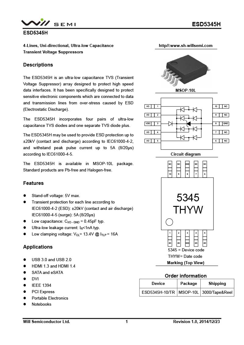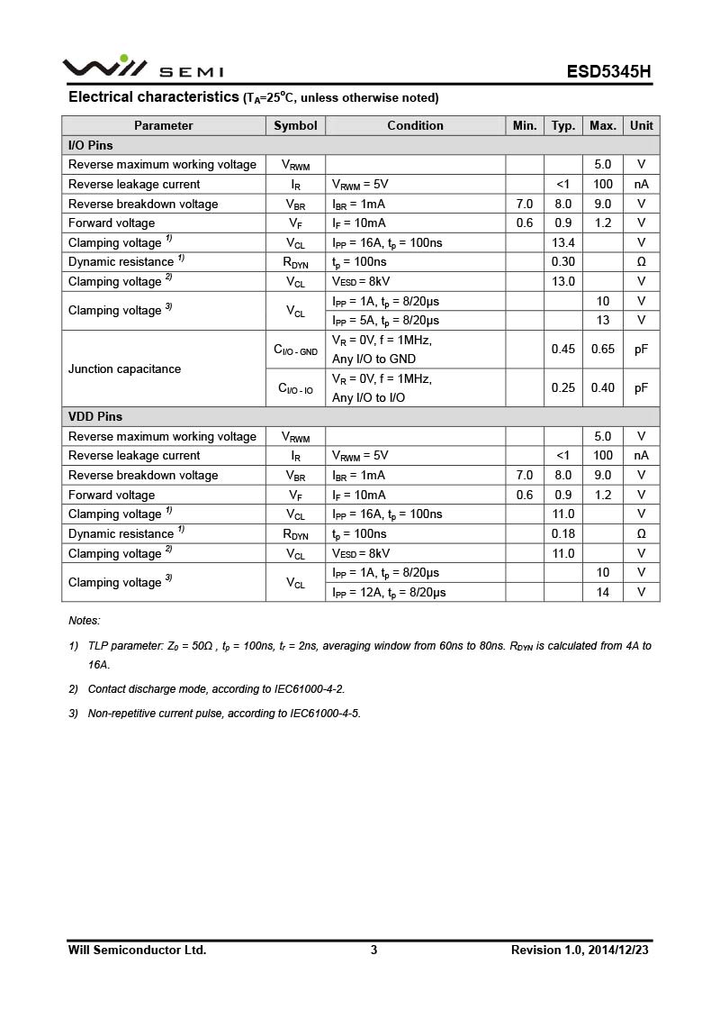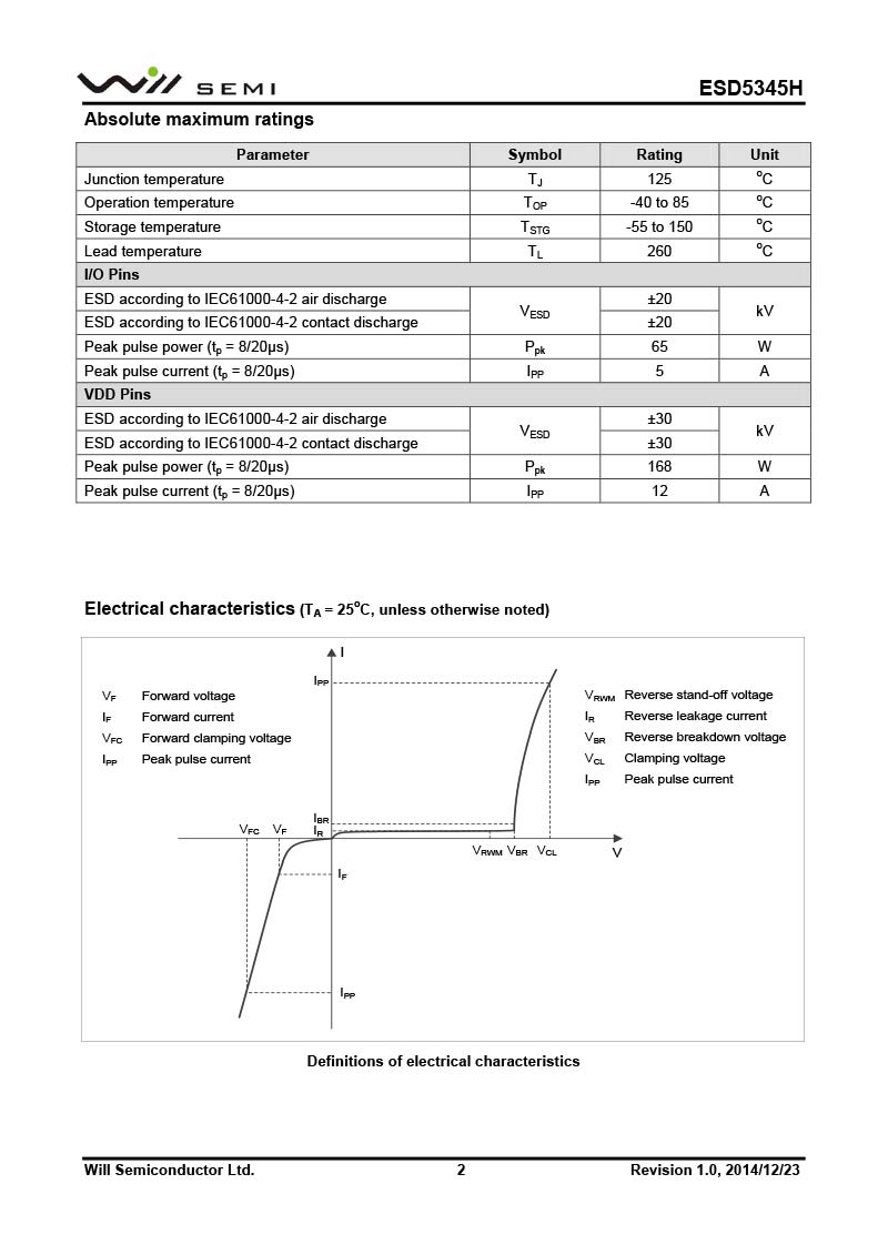 首頁 - 產(chǎn)品中心 - 代理產(chǎn)品 - 韋爾 / WILL -ESD5345H 韋爾小功率靜電TVS