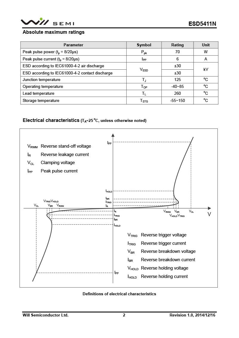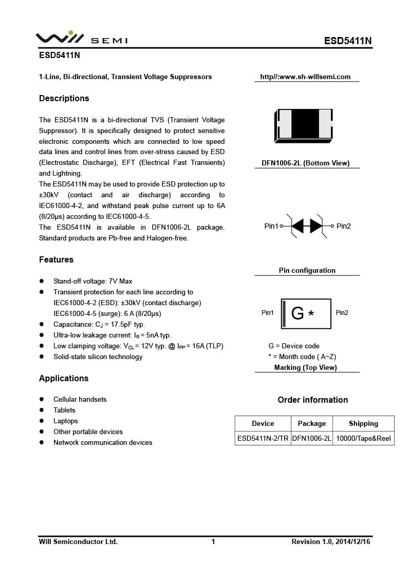 首頁 - 產(chǎn)品中心 - 代理產(chǎn)品 - 韋爾 / WILL -ESD5411N 韋爾小功率靜電TVS