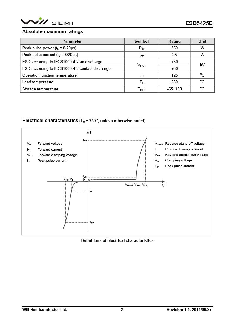 首頁 - 產(chǎn)品中心 - 代理產(chǎn)品 - 韋爾 / WILL -ESD5425E 韋爾小功率靜電TVS