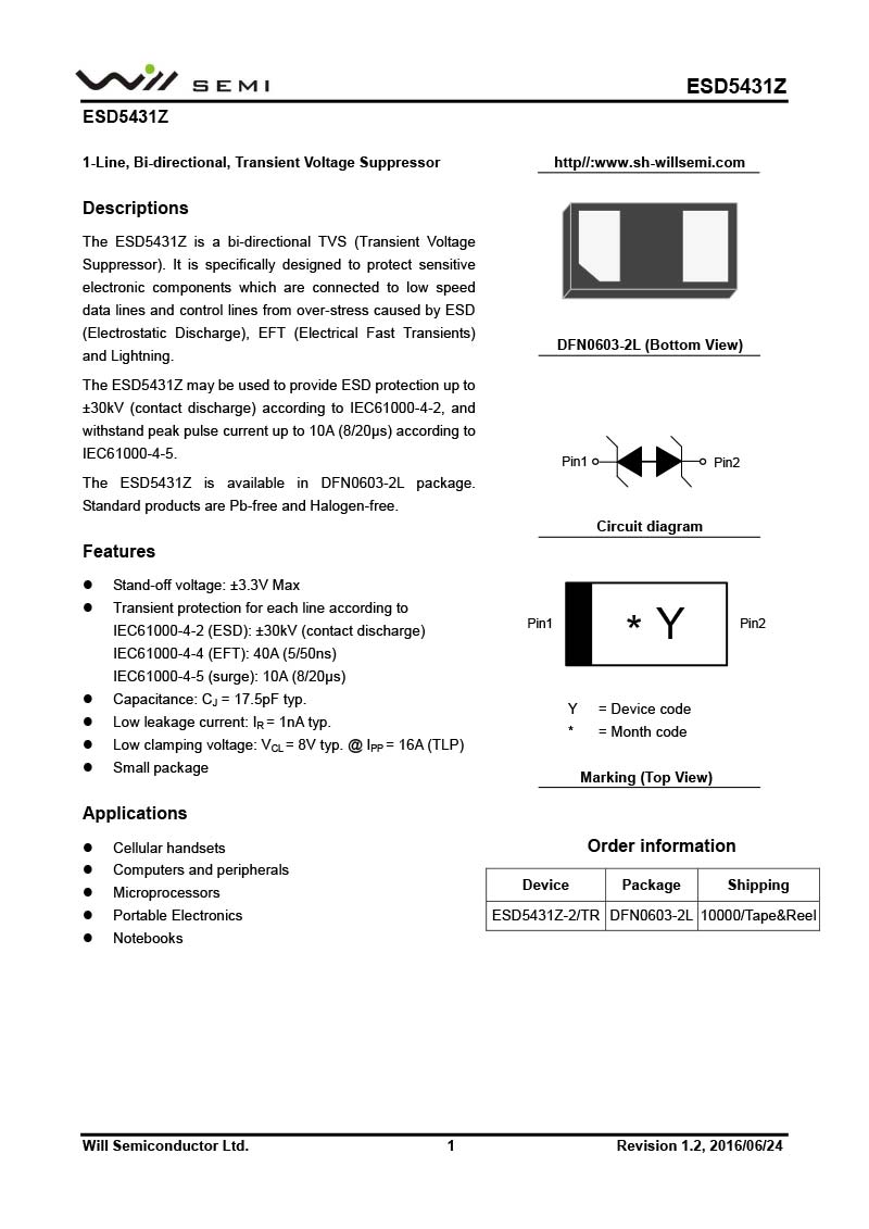 首頁 - 產(chǎn)品中心 - 代理產(chǎn)品 - 韋爾 / WILL -ESD5431Z 韋爾小功率靜電TVS