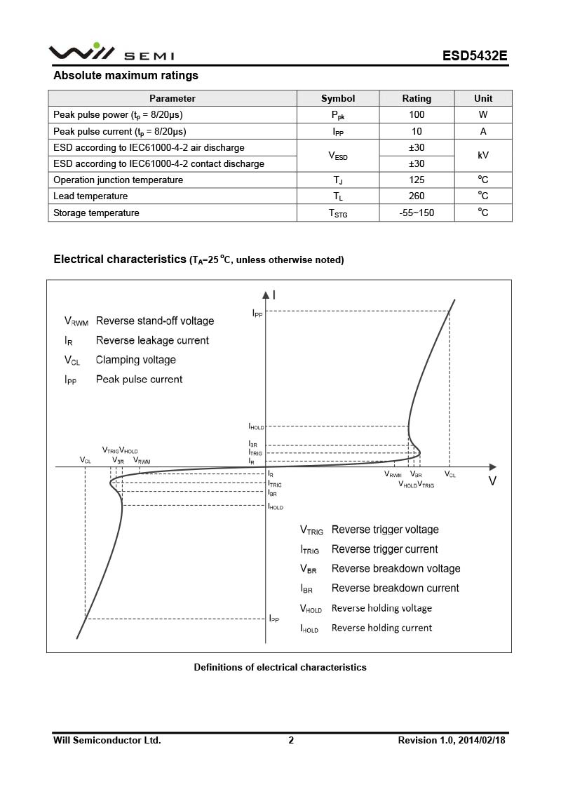 首頁 - 產(chǎn)品中心 - 代理產(chǎn)品 - 韋爾 / WILL -ESD5432E 韋爾小功率靜電TVS