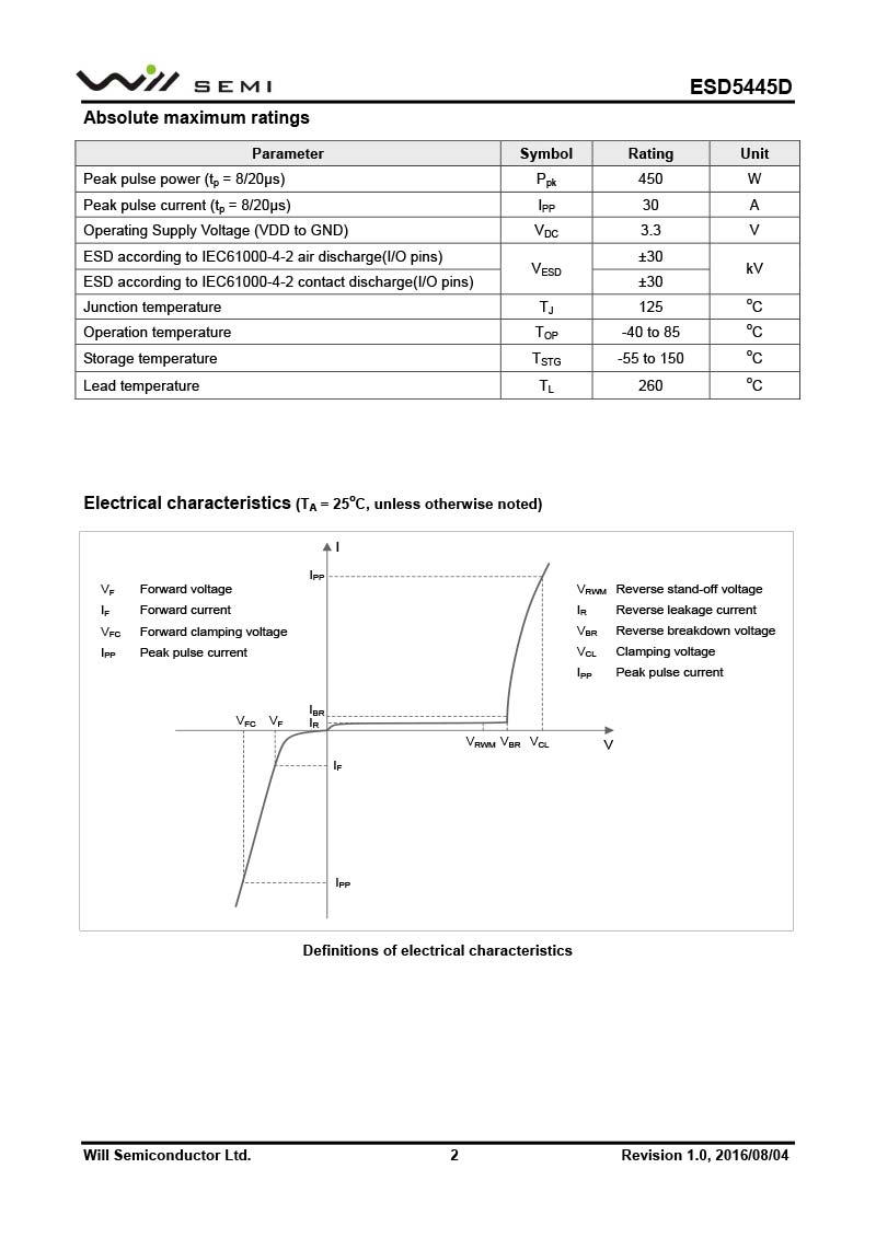 首頁 - 產(chǎn)品中心 - 代理產(chǎn)品 - 韋爾 / WILL -ESD5445D 韋爾小功率靜電TVS