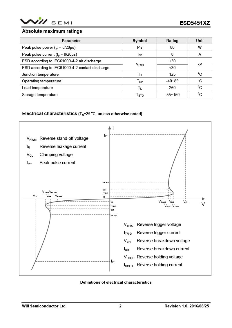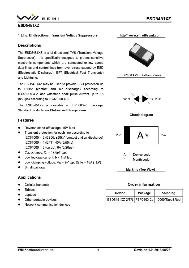 首頁 - 產(chǎn)品中心 - 代理產(chǎn)品 - 韋爾 / WILL -ESD5451XZ 韋爾小功率靜電TVS