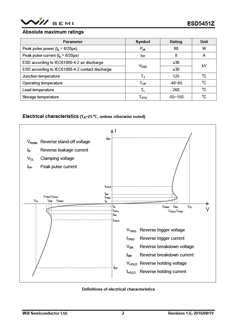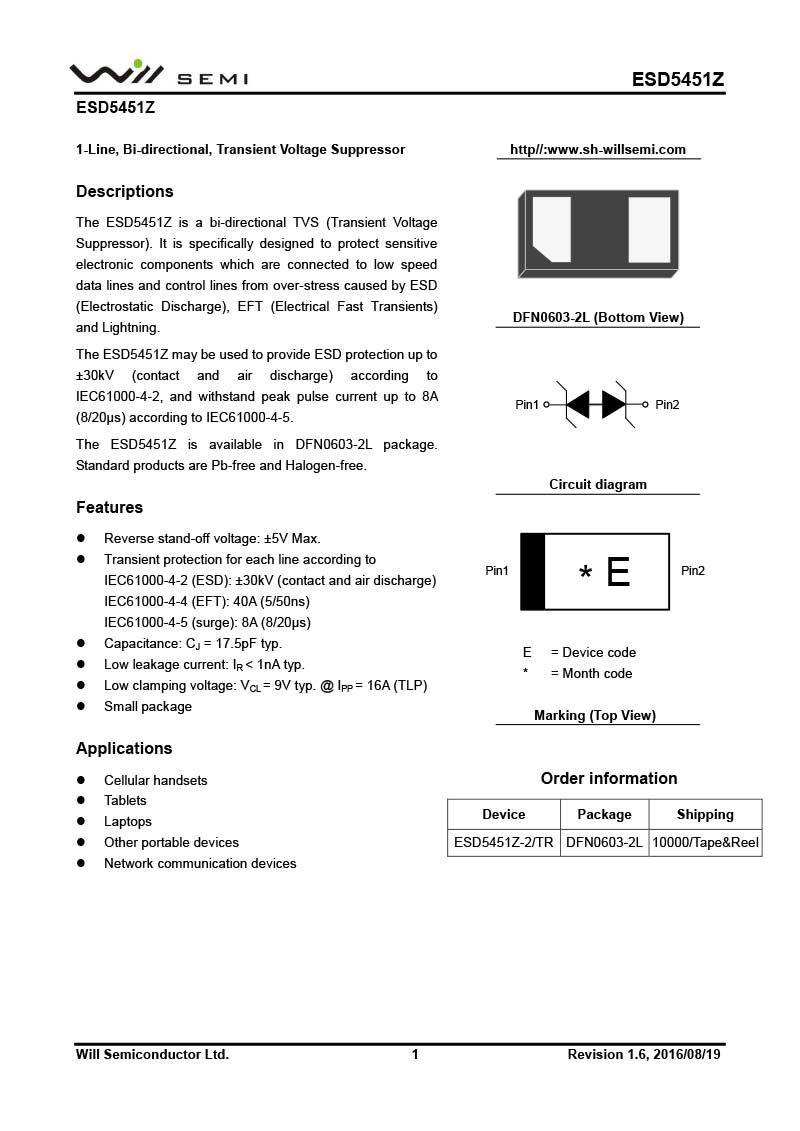 首頁 - 產(chǎn)品中心 - 代理產(chǎn)品 - 韋爾 / WILL -ESD5451Z 韋爾小功率靜電TVS