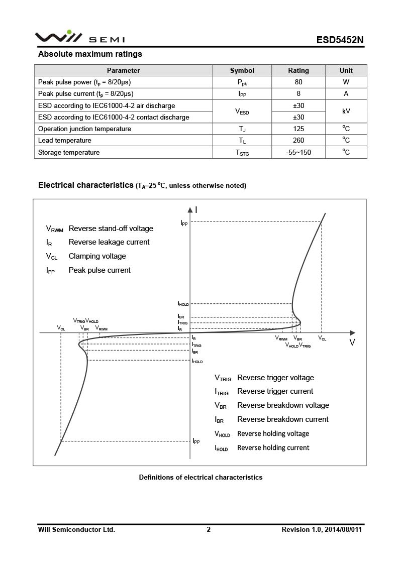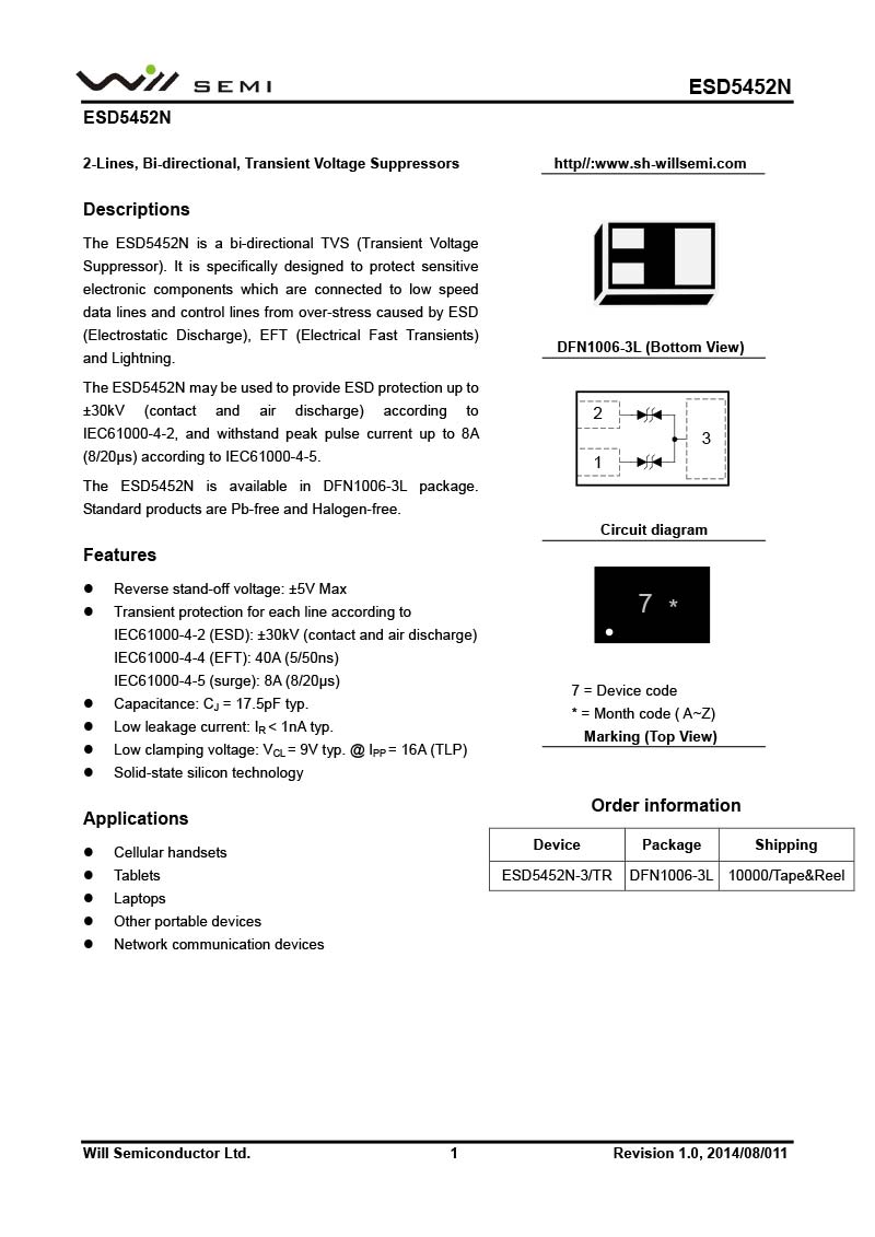 ESD5452N 韋爾小功率靜電TVS