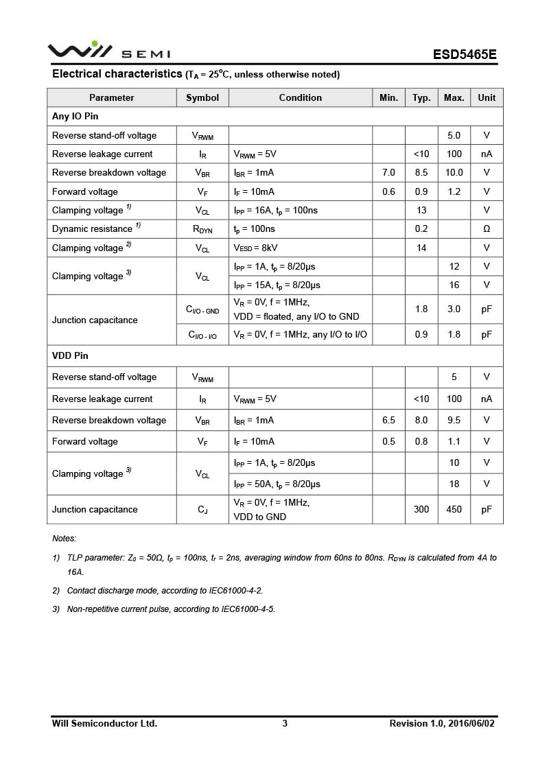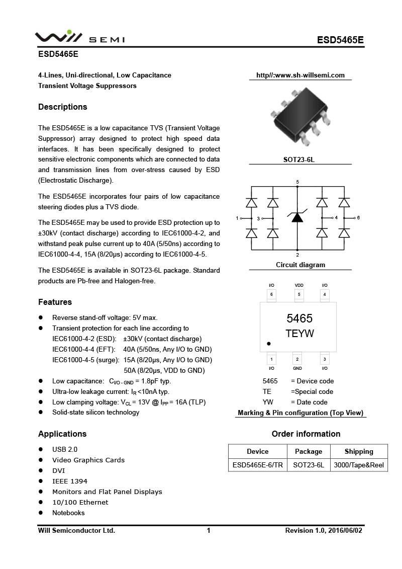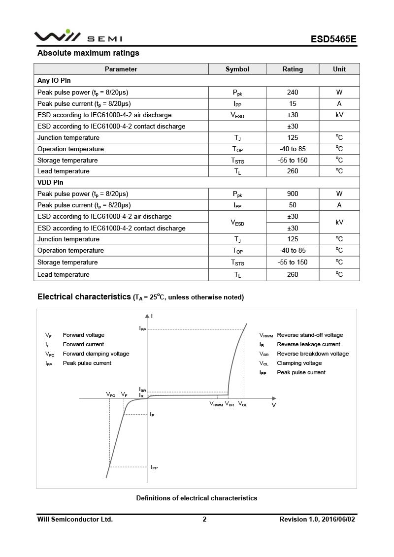 首頁 - 產(chǎn)品中心 - 代理產(chǎn)品 - 韋爾 / WILL -ESD5465E 韋爾小功率靜電TVS