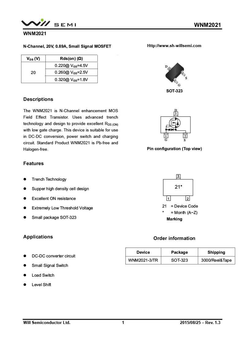 WNM2021 韋爾MOS管