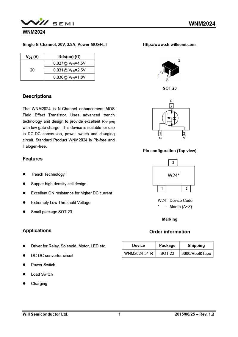 WNM2024 韋爾MOS管