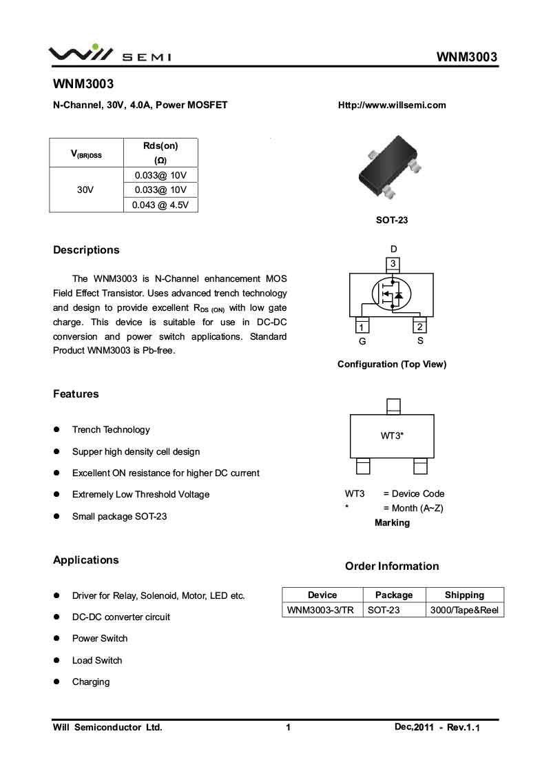 WNM3003 韋爾MOS管