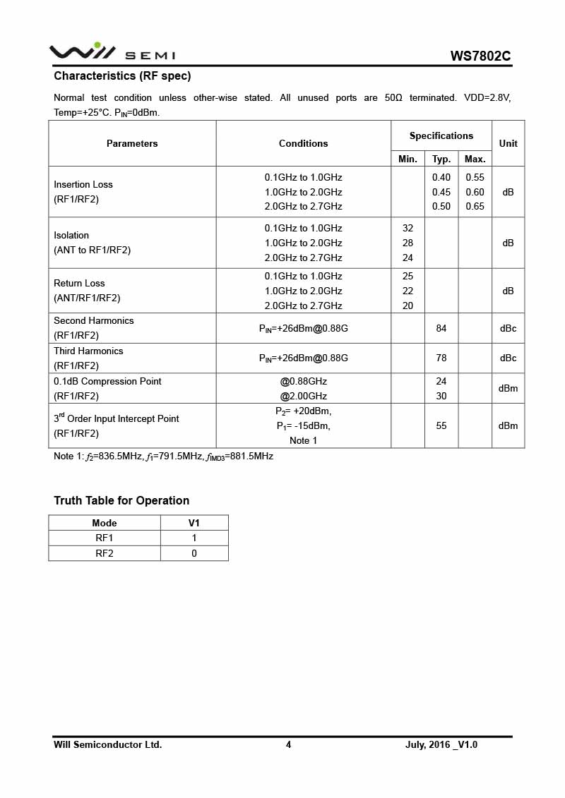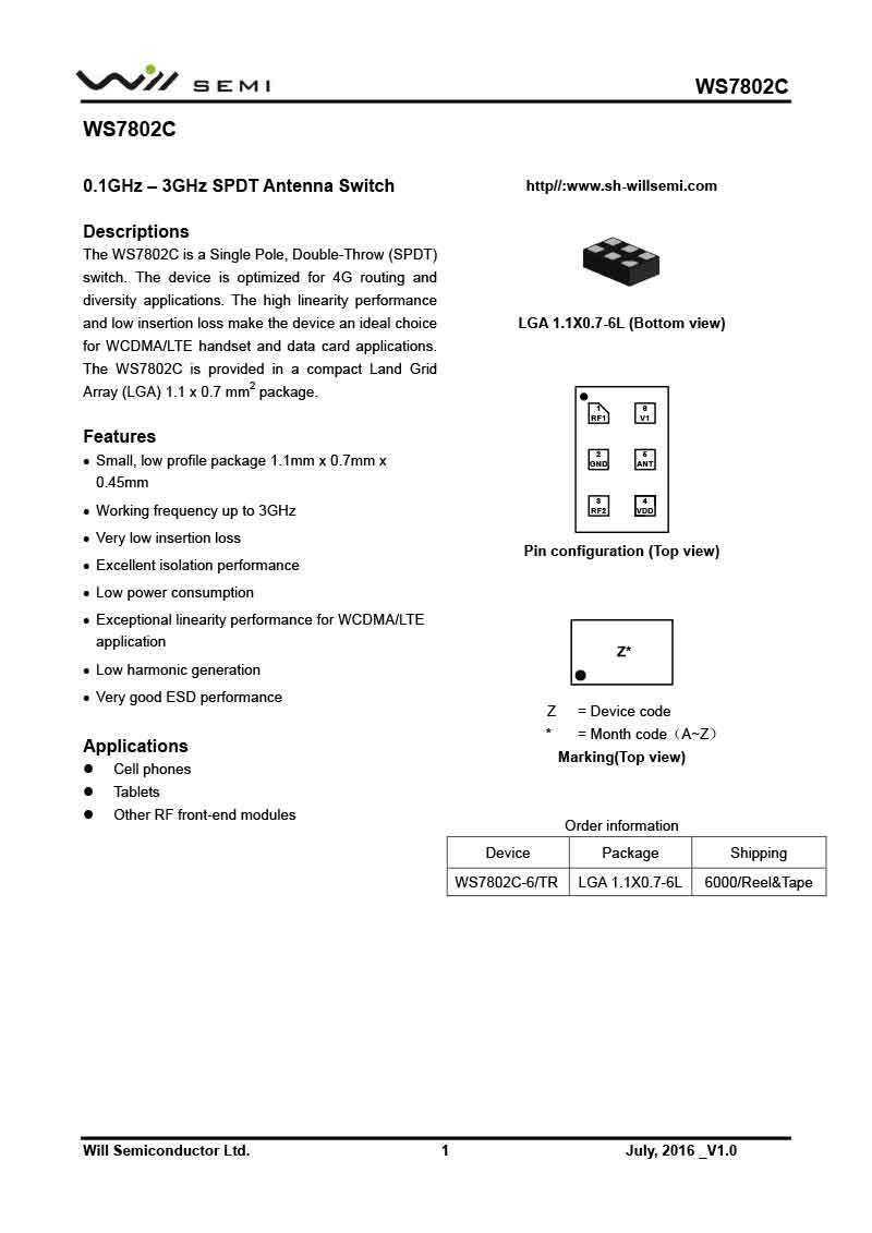 WS7802C 韋爾射頻開(kāi)關(guān)