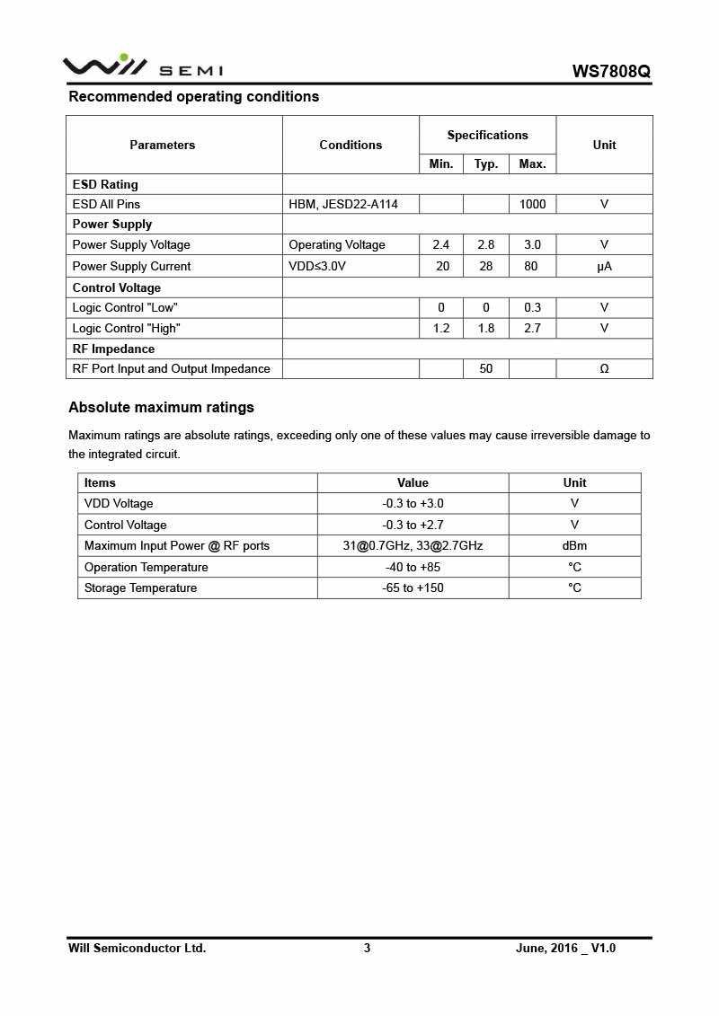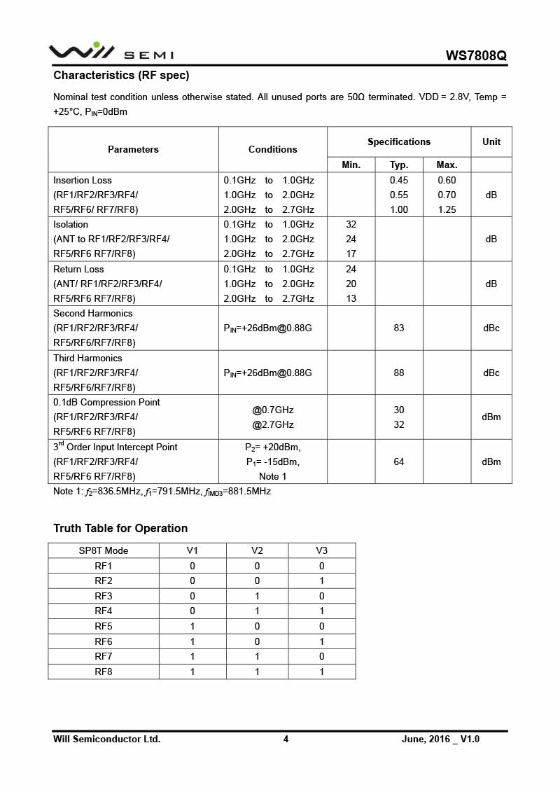 WS7808Q 韋爾射頻開(kāi)關(guān)