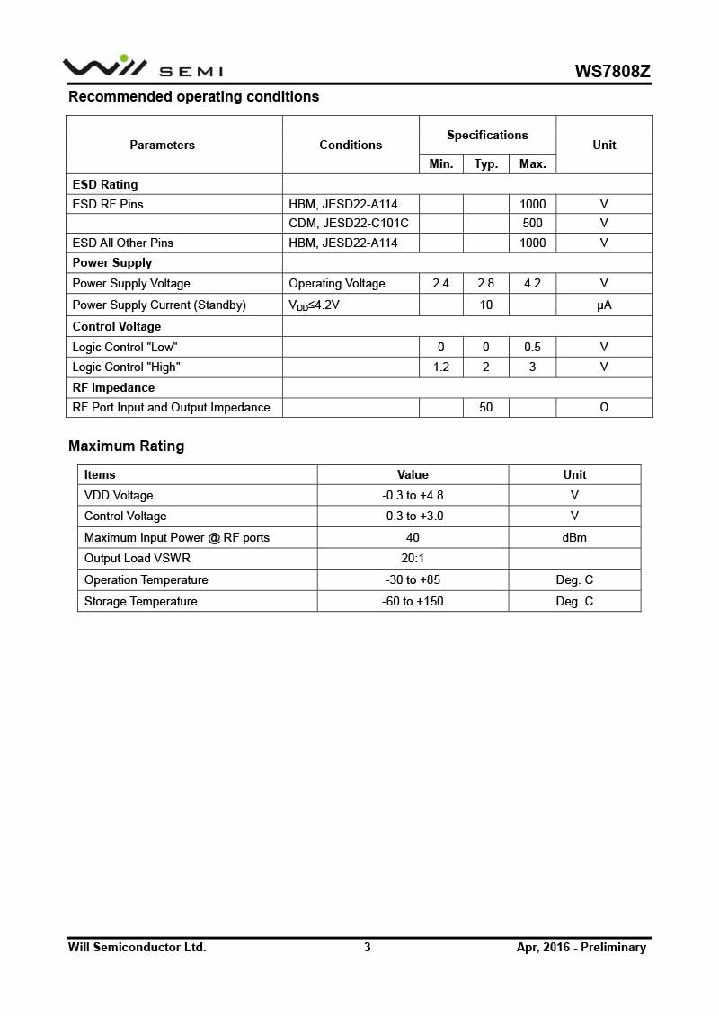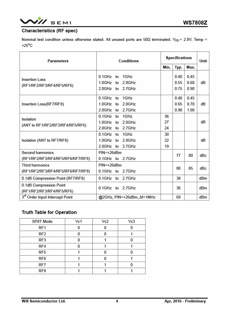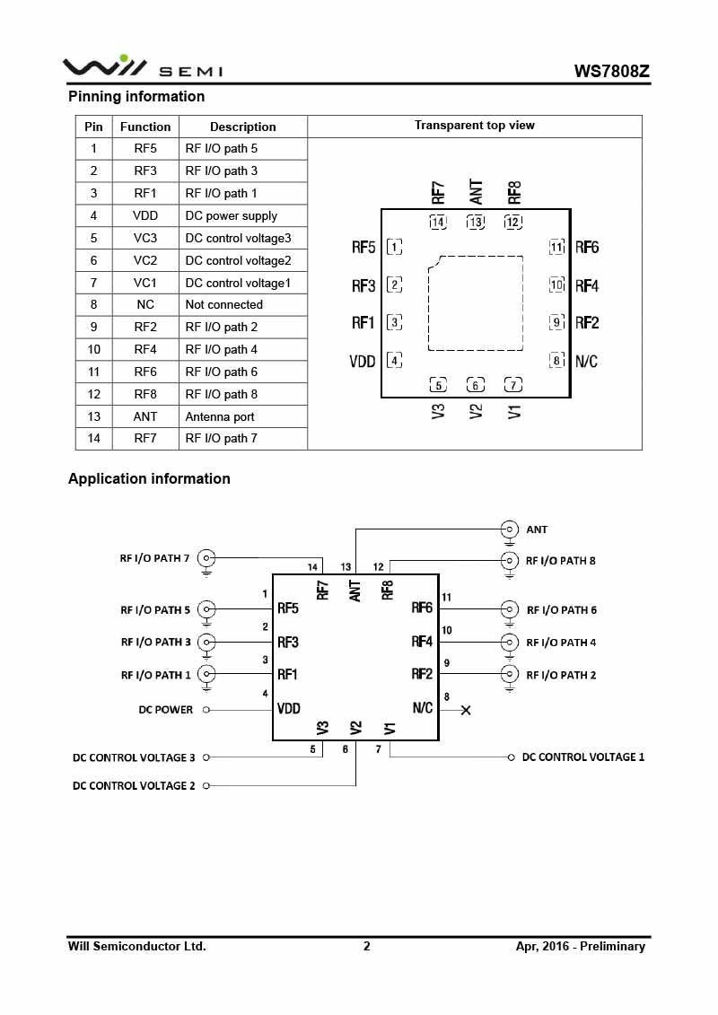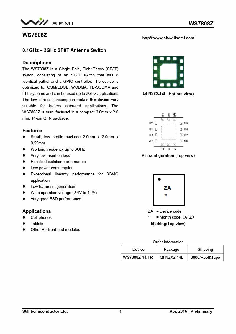 WS7808Z 韋爾射頻開關(guān)