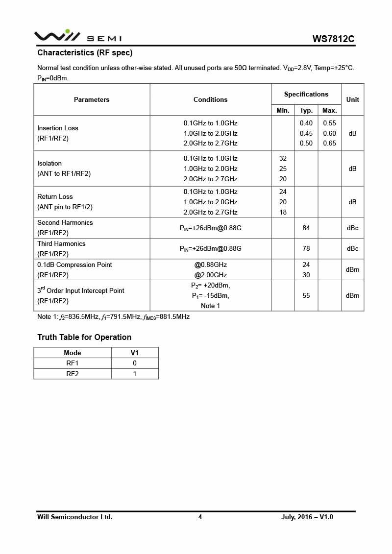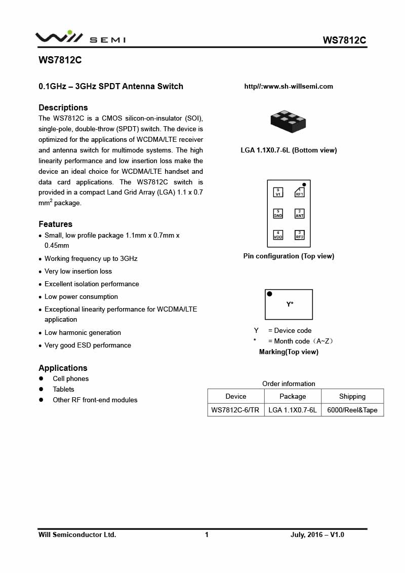 WS7812C 韋爾射頻開(kāi)關(guān)