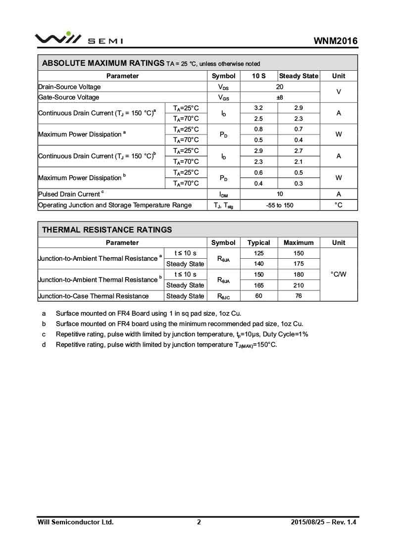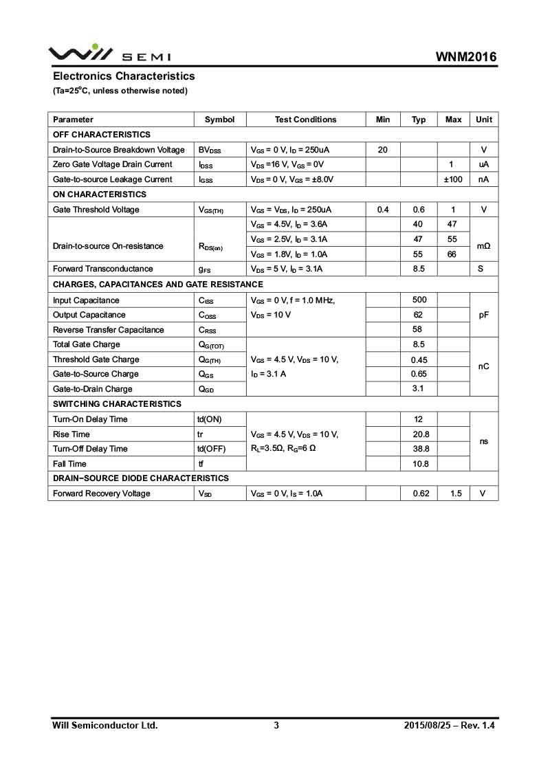 WNM2016 韋爾MOS管