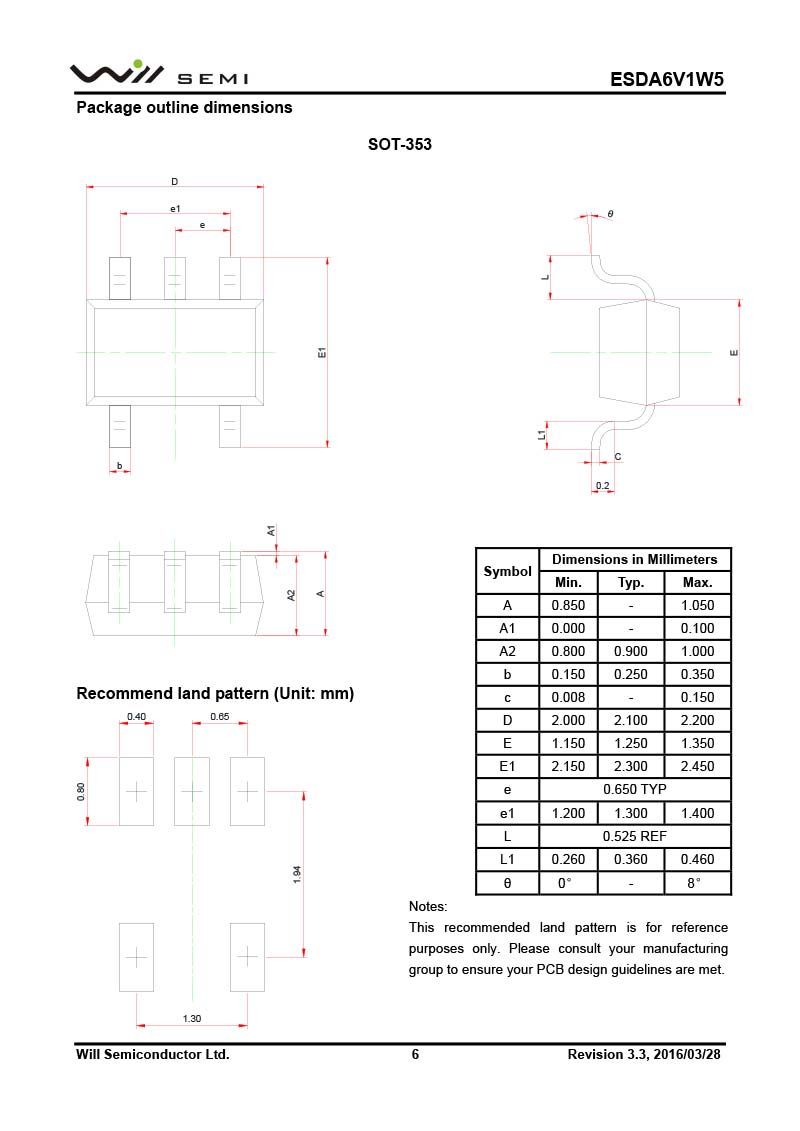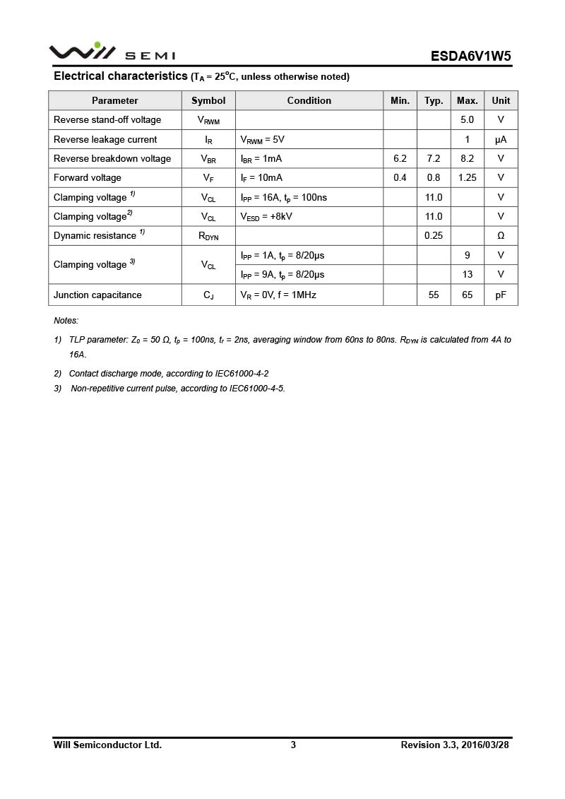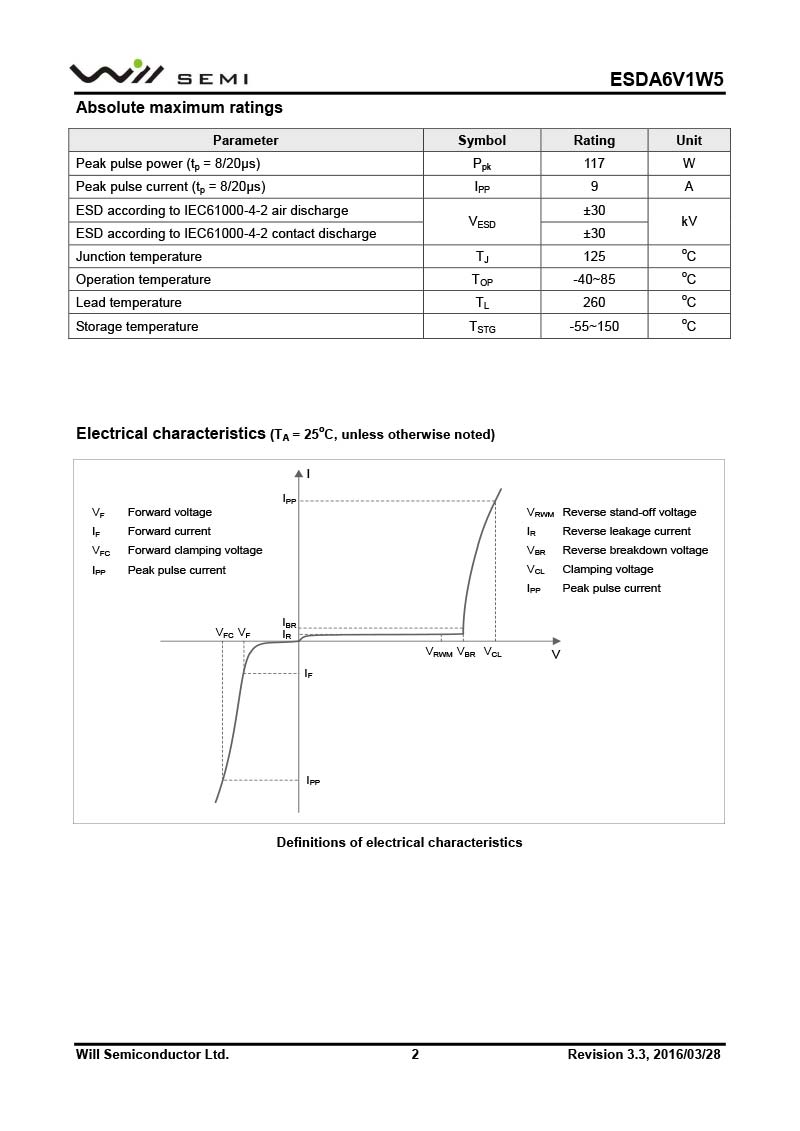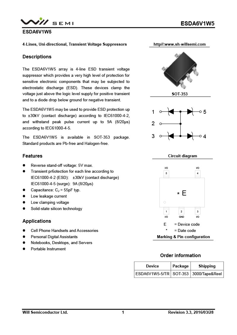 ESDA6V1W5 韋爾小功率靜電TVS
