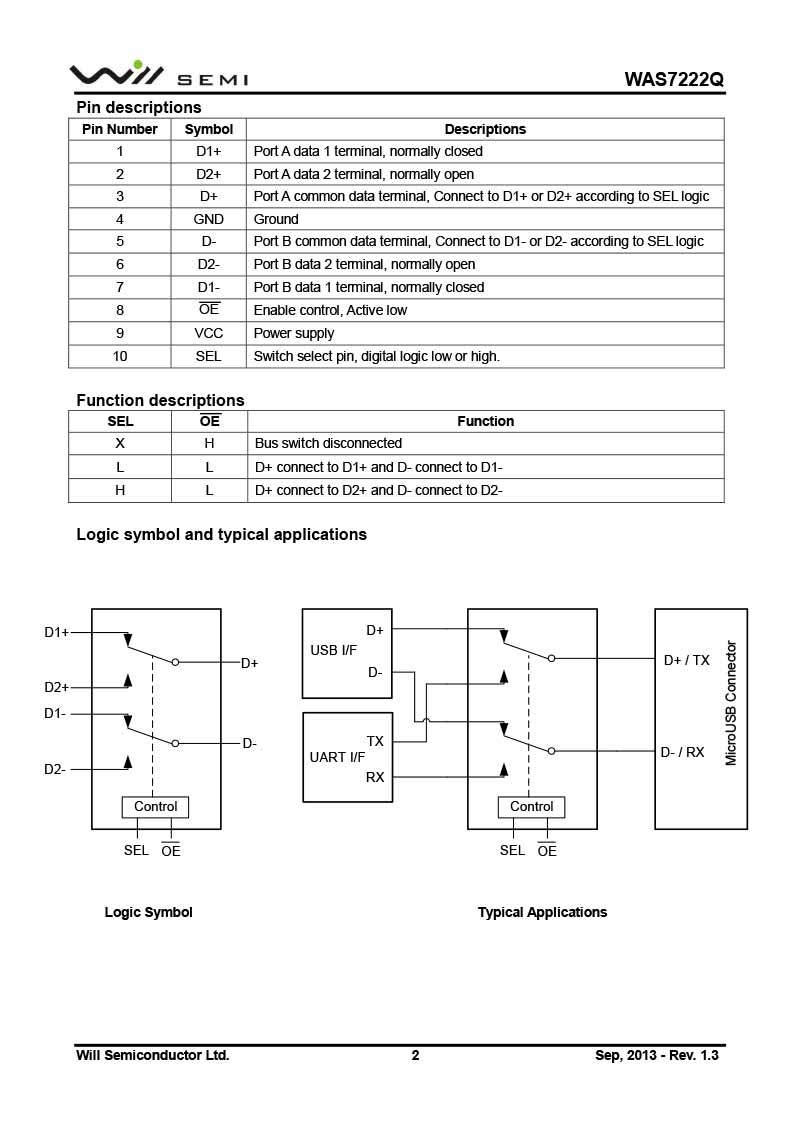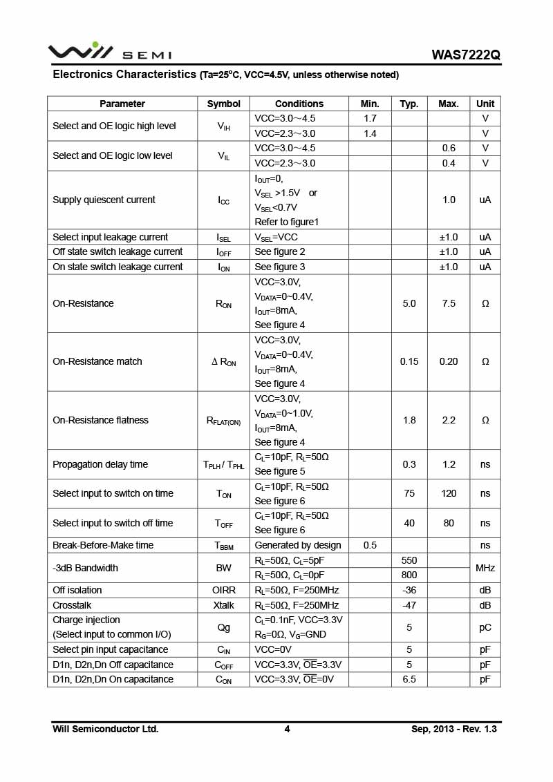 首頁 - 產品中心 - 代理產品 - 韋爾 / WILL -WAS7222Q 韋爾模擬數(shù)據(jù)開關產品