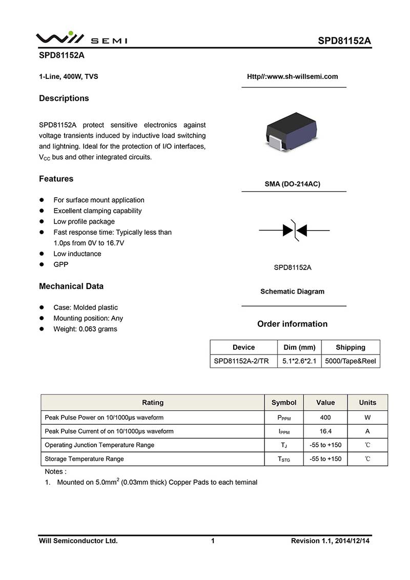 首頁(yè) - 產(chǎn)品中心 - 代理產(chǎn)品 - 韋爾 / WILL -SPD81152A 韋爾大功率浪涌TVS